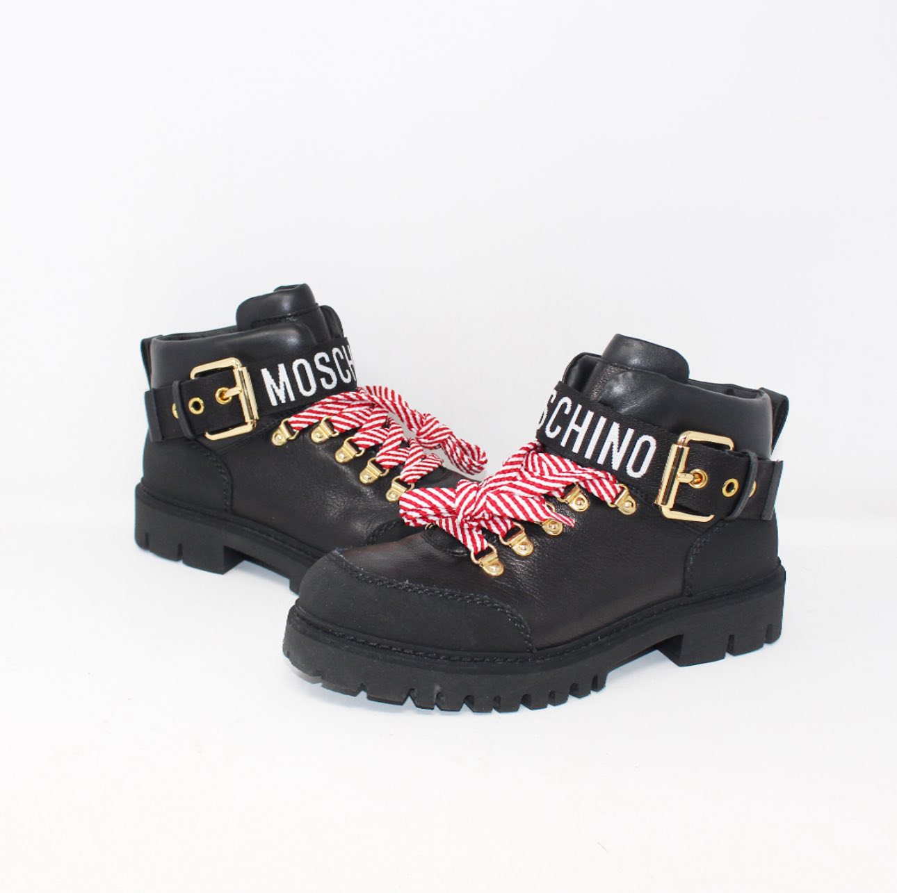 MOSCHINO #6A9ZA3 Love Plaque Lace Up Ankle Boots Size 38