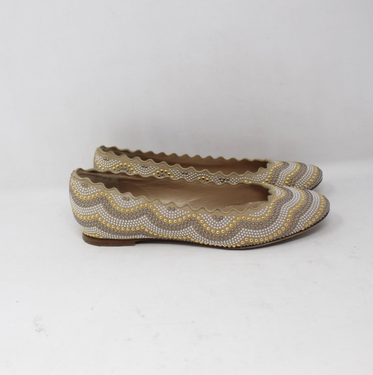 CHLOE #AU4LE6 Studded Suede Ballet Flats Size 37