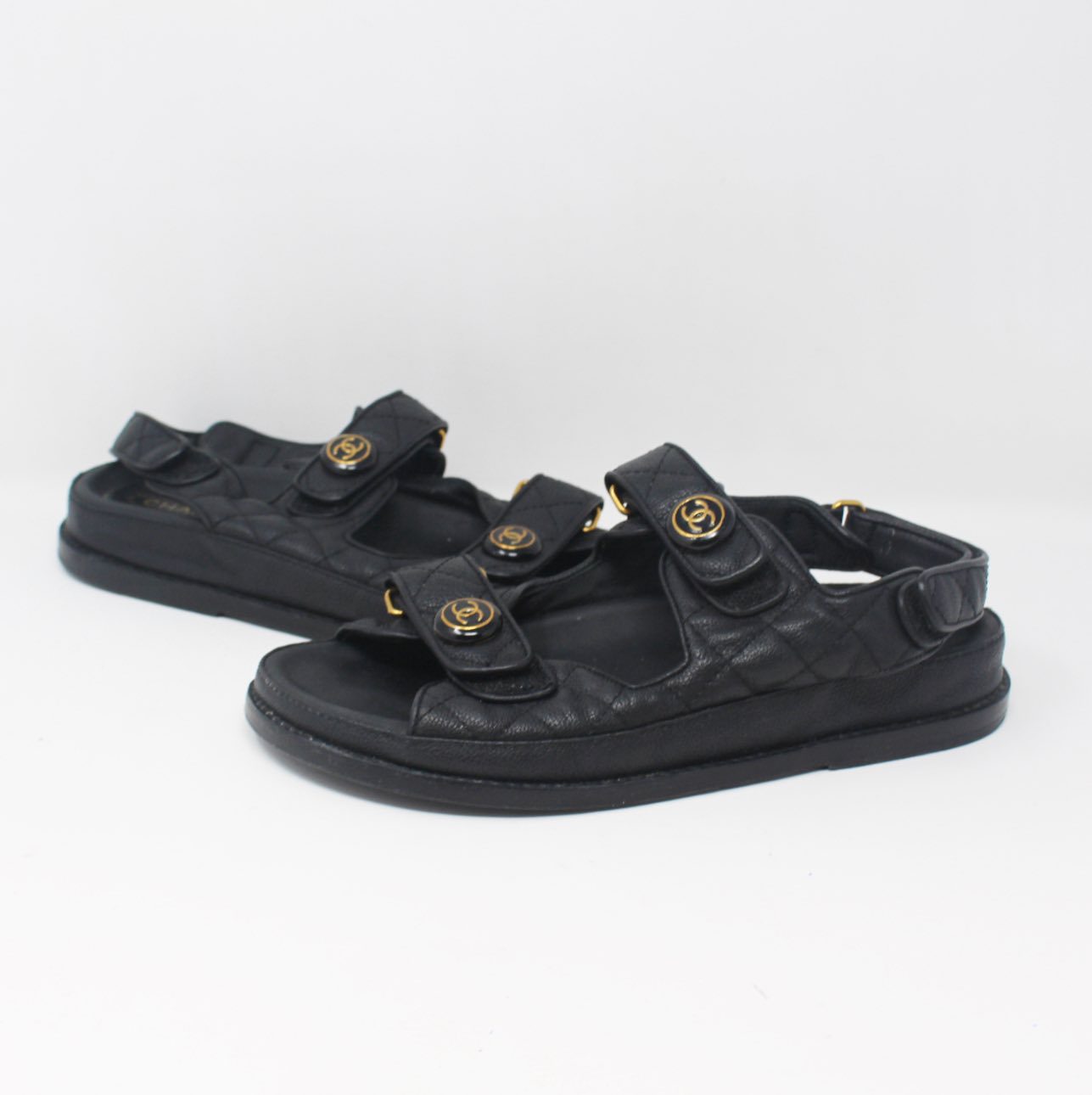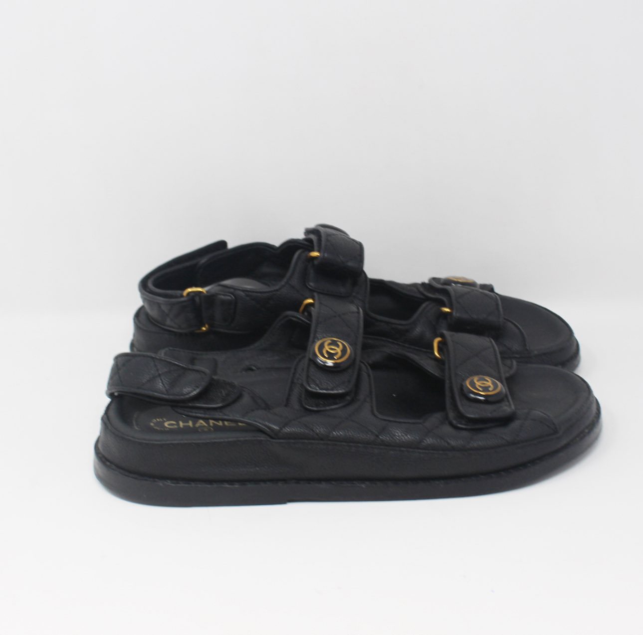 CHANEL #4PVA71 Grained Velcro Dad Sandals Size 38
