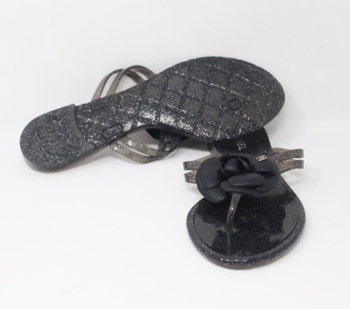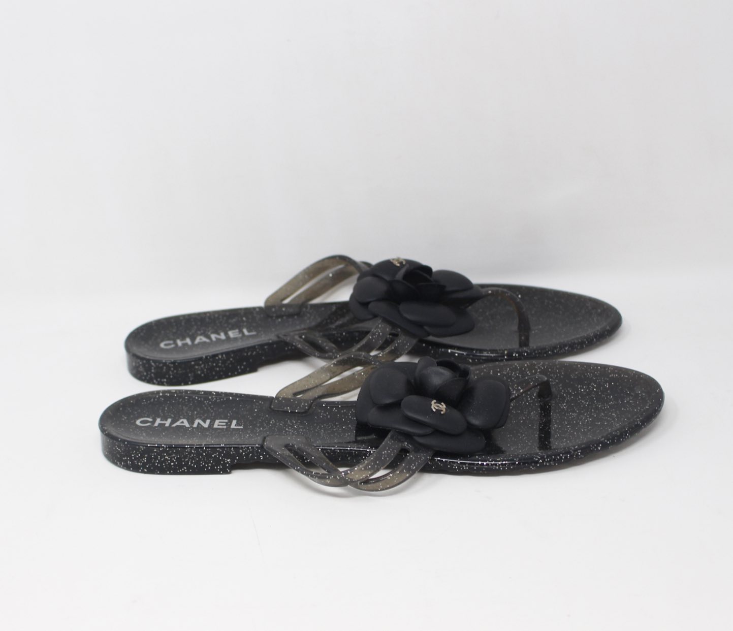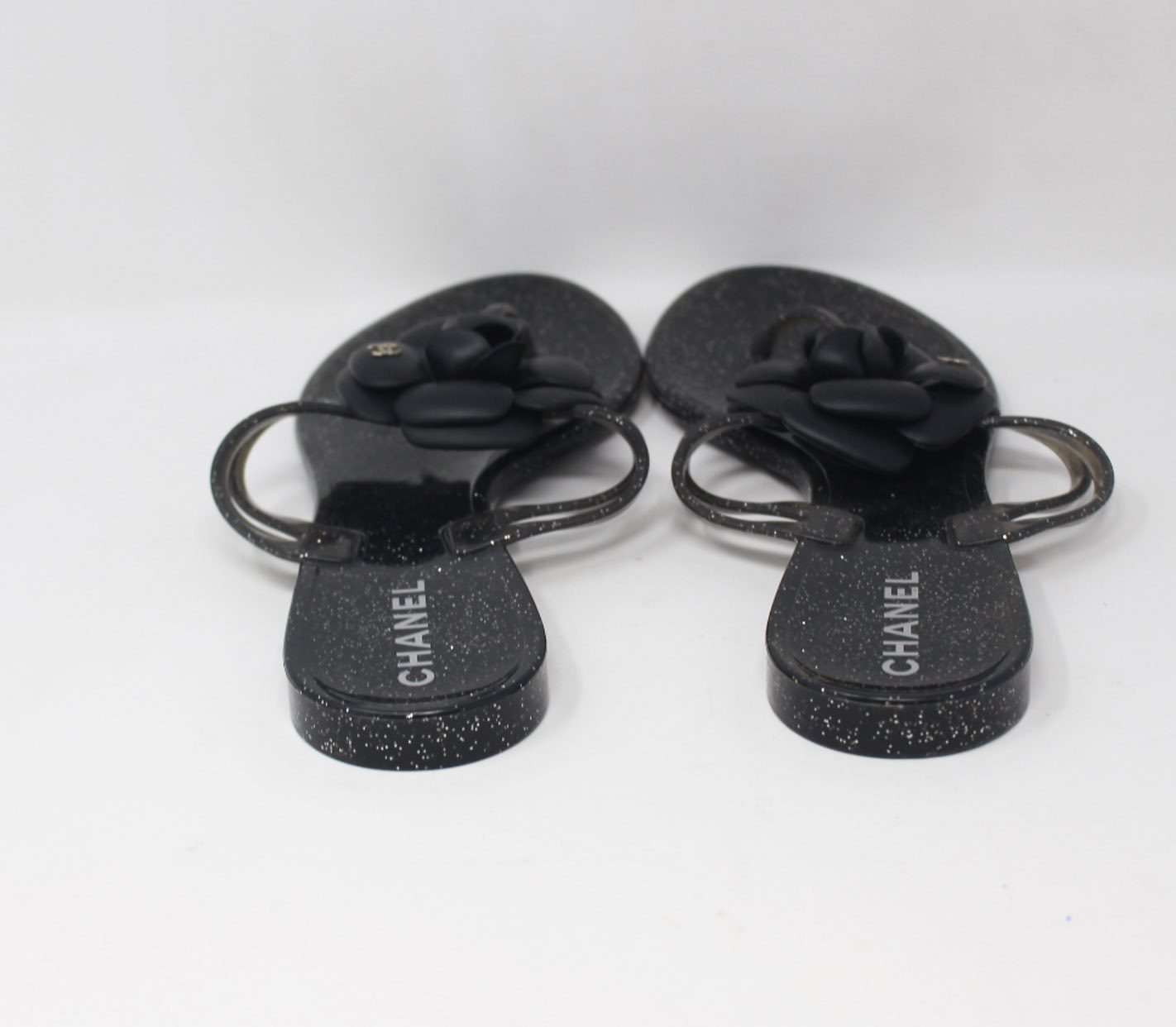 CHANEL #736ESF Jelly Camellia Flip Flops Size 39