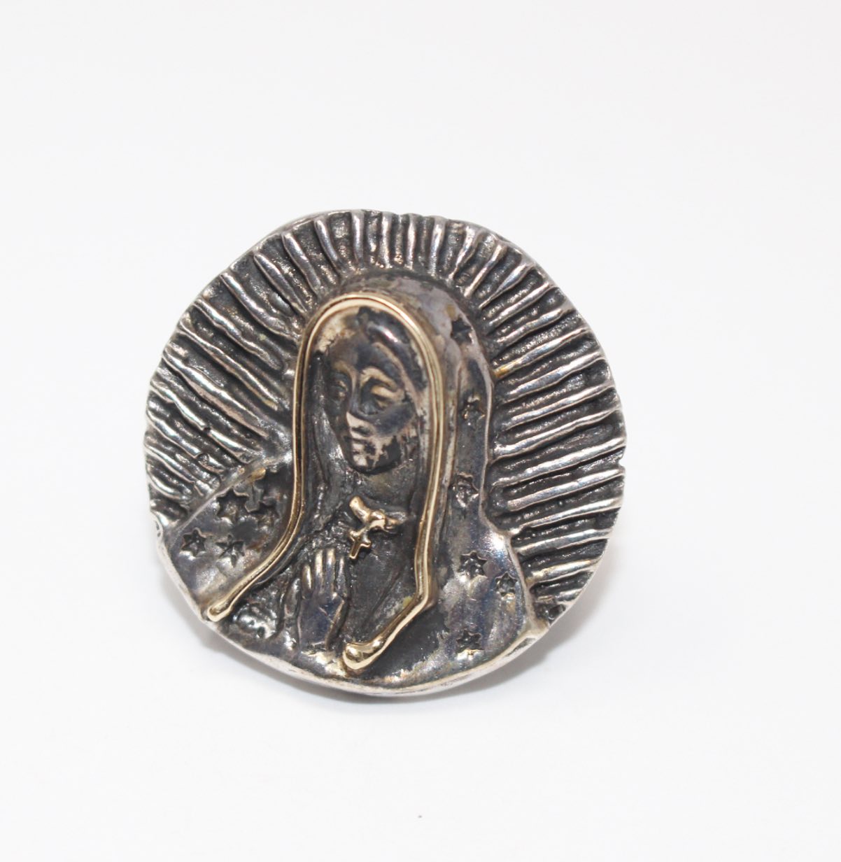 DIANE MALOUF #8XDB3C Two Tone 925 14K Virgin Mary Ring Size 10