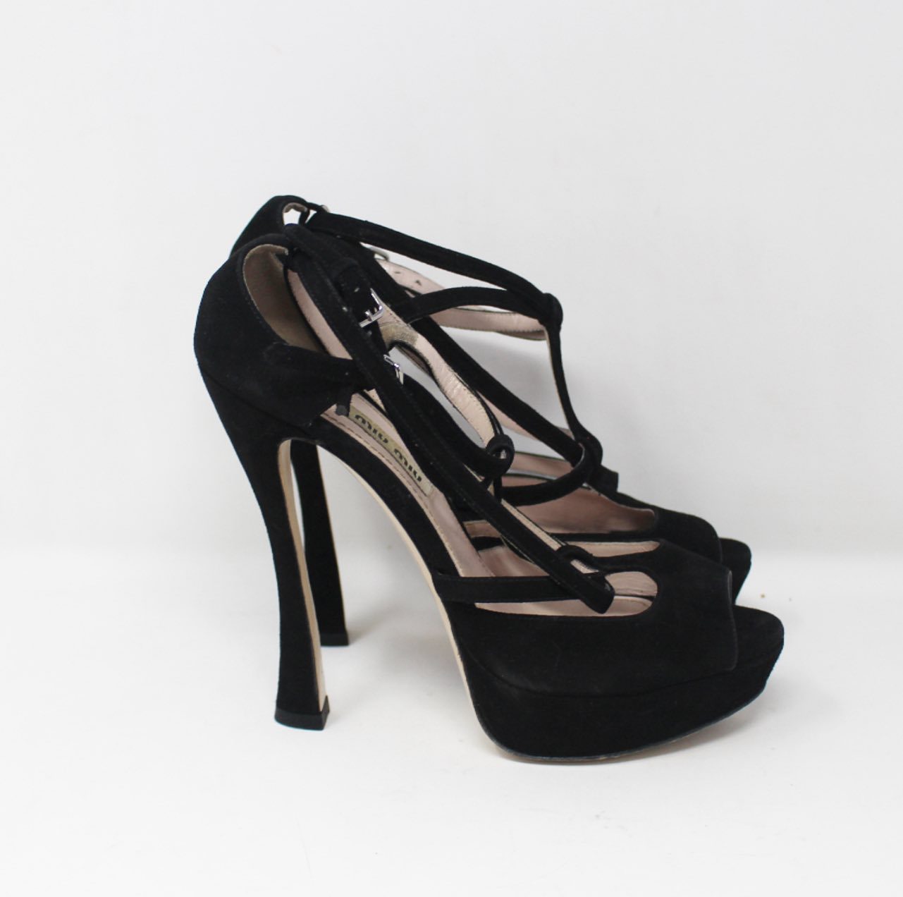 MIU MIU #A3EPYW Suede Peep Toe Platform Heels Size 35.5