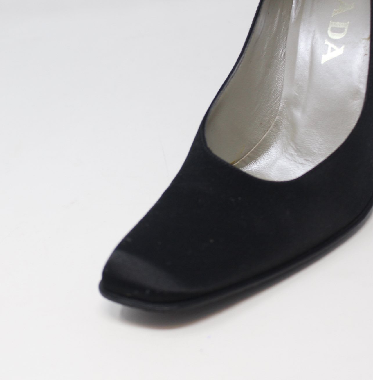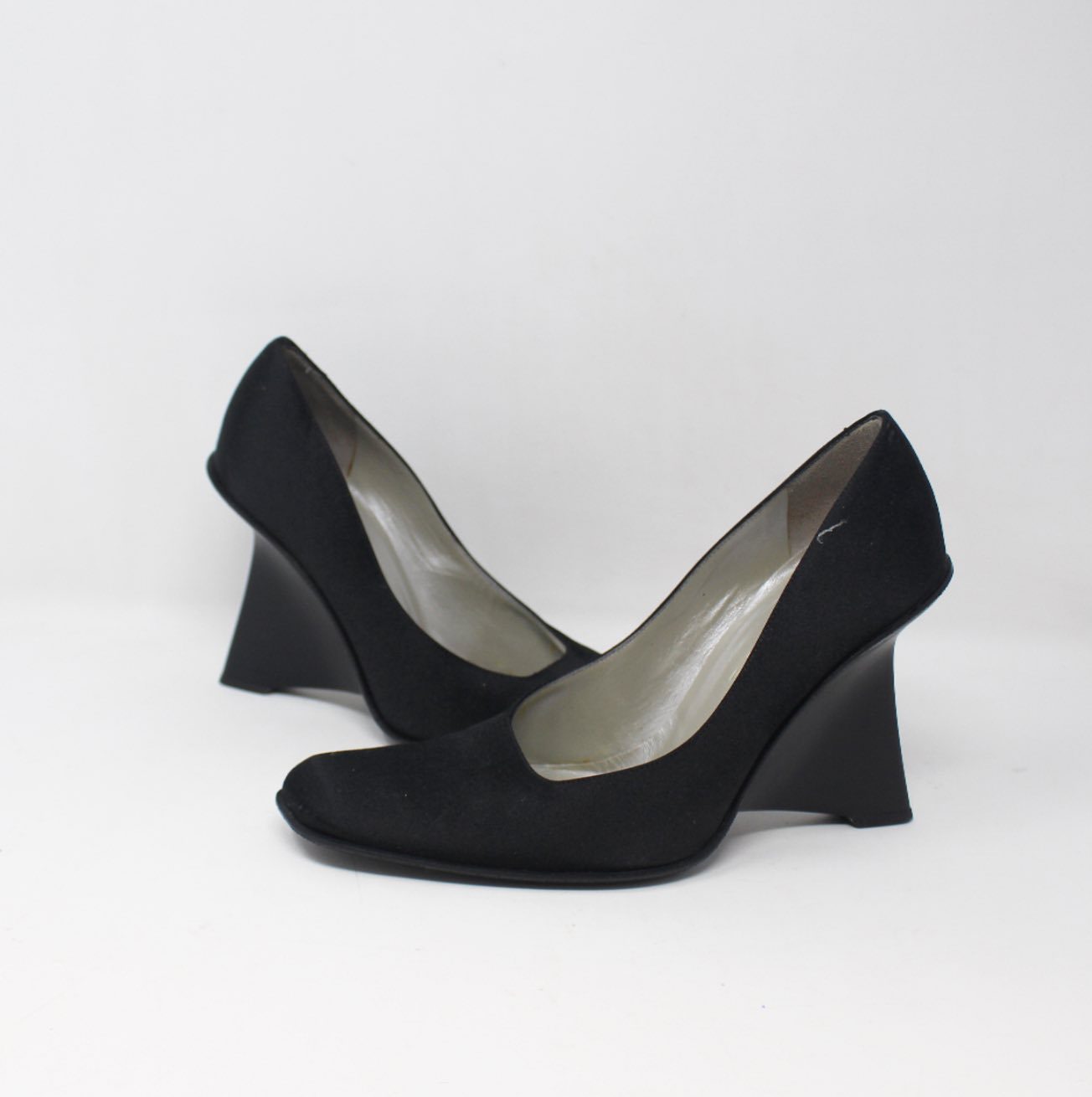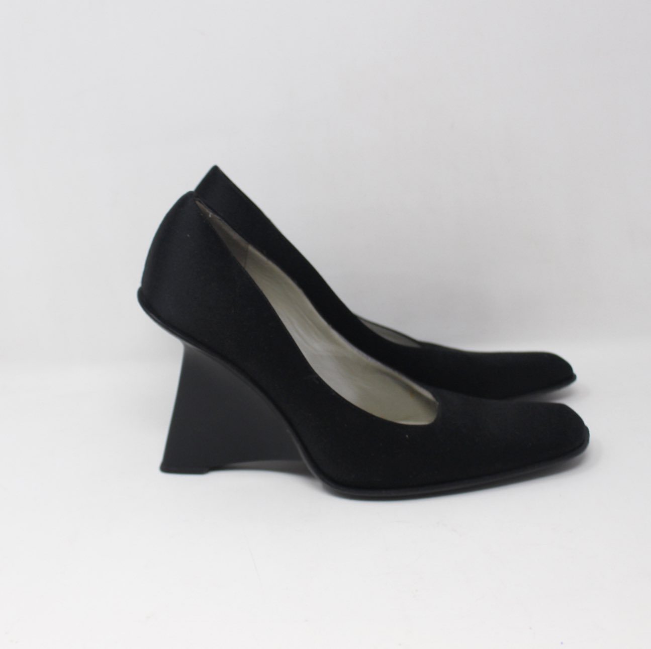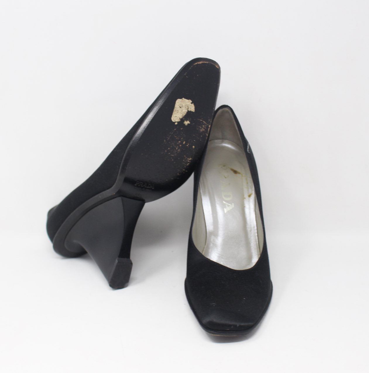 PRADA #6E7ENN Satin Wedge Heels Size 36.5