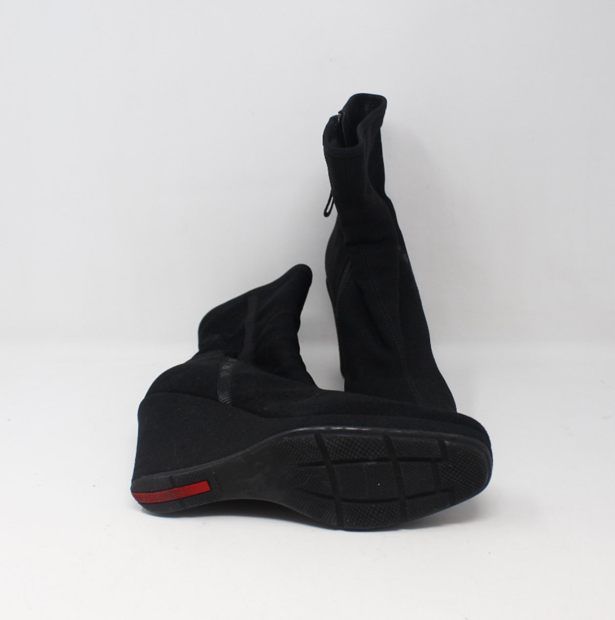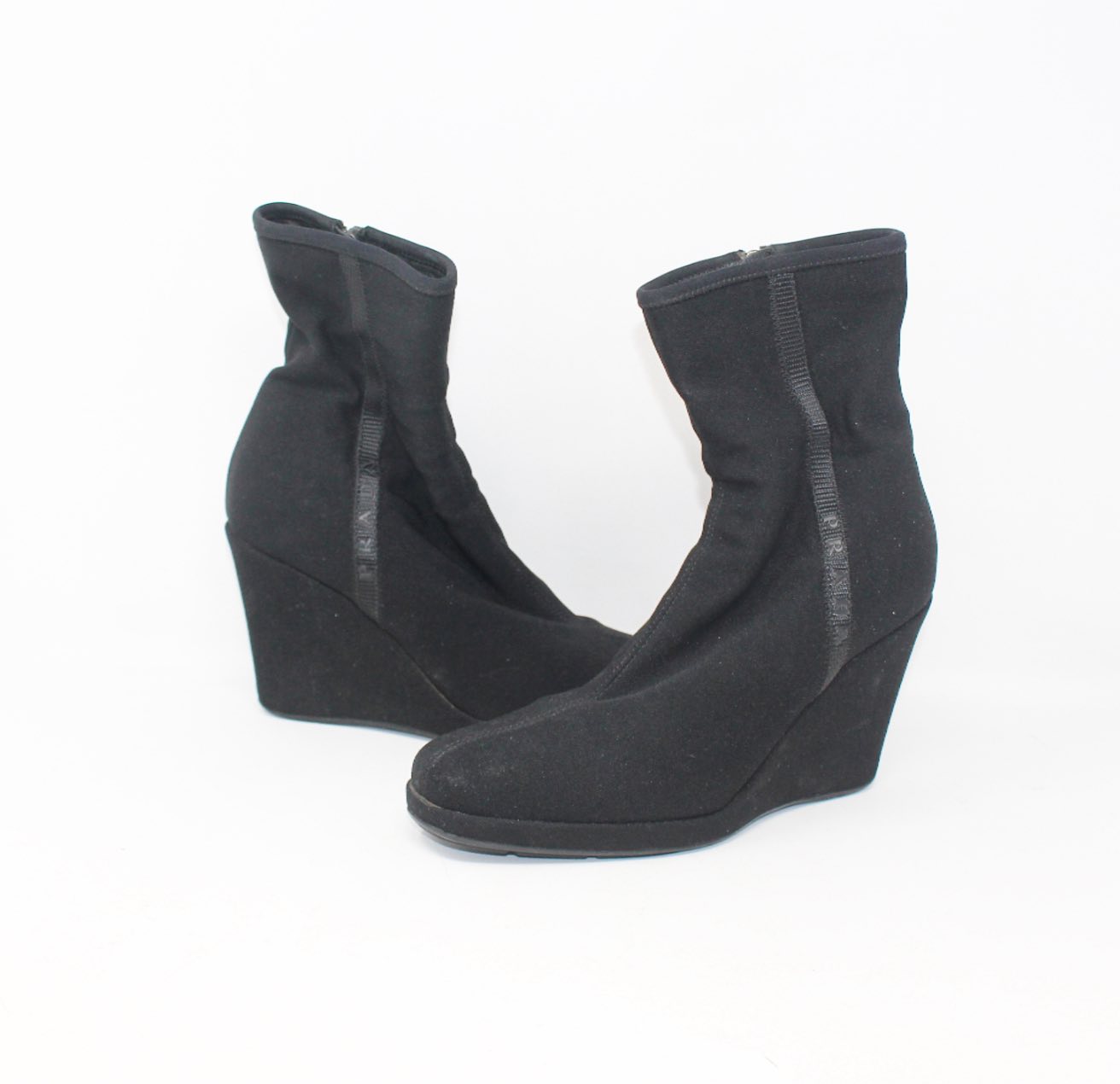 PRADA #D49R65 Nylon Wedge Ankle Boots Size 36