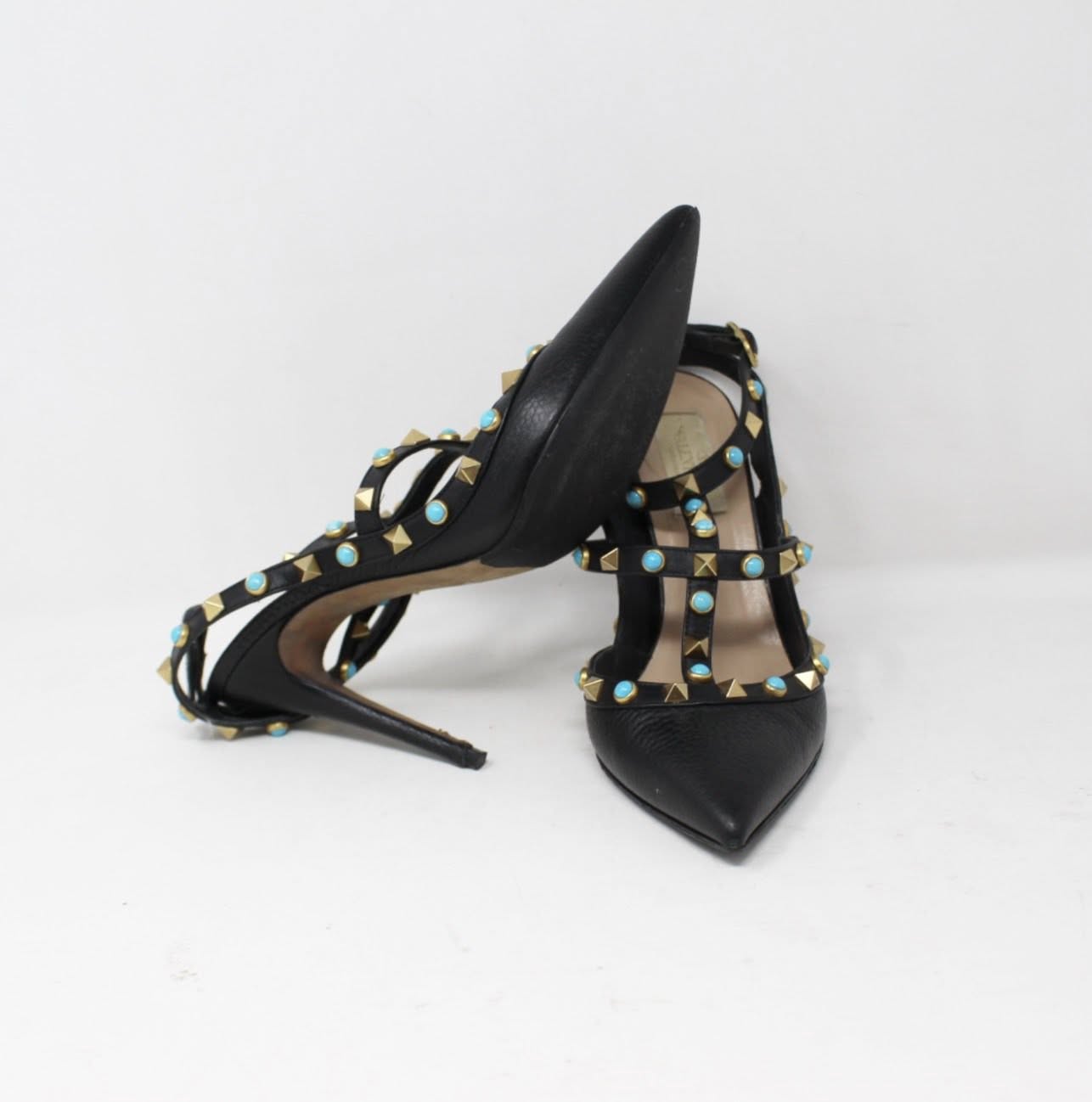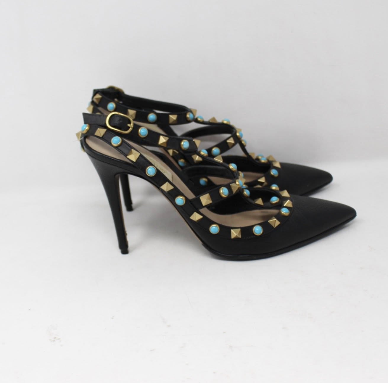 VALENTINO GARAVANI #R6F685 Rockstud Ankle Strap Heels Size 37